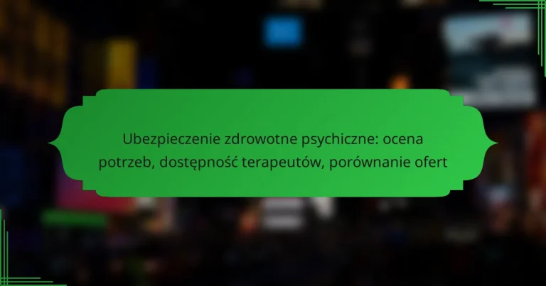 Ubezpieczenie zdrowotne psychiczne odgrywa kluczową rolę w dostępie do wsparcia terapeutycznego, dlatego ważne jest, aby najpierw ocenić swoje potrzeby oraz zrozumieć, jakie problemy psychiczne wymagają interwencji. W Polsce dostępne są różnorodne plany ubezpieczeniowe, które różnią ....